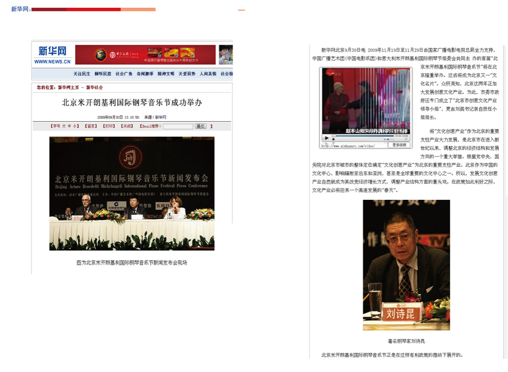 北京國際鋼琴音樂節于2009年、2010年、2011年成功舉辦了三屆,它是國際最高水準、規模空前的鋼琴藝術盛會,融合了音樂會、大師班、大師見面會等多種活動于一體,以其“高端性、創新性、專業性”等特點迅速贏得了業內外人士的一致好評。