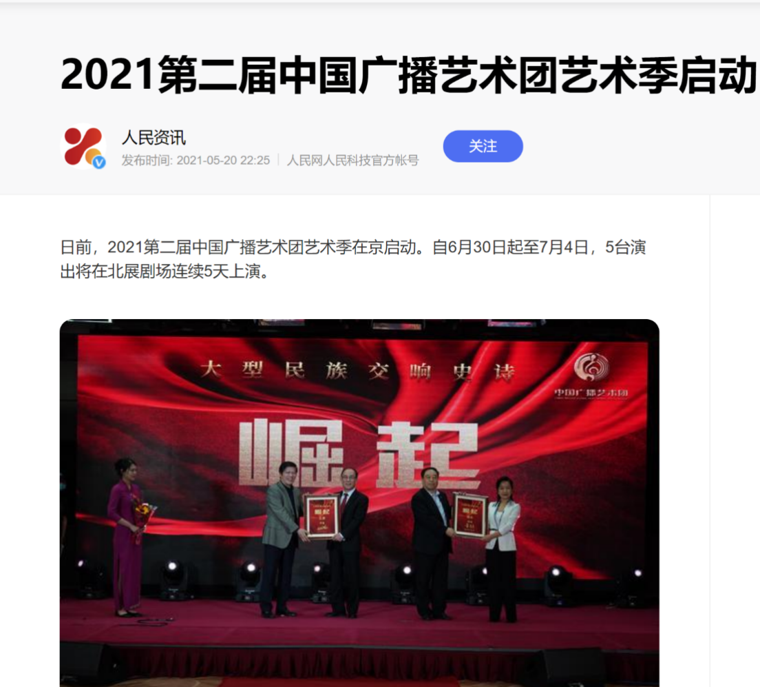 由中國廣播藝術團和中國國家博物館聯合出品的大型民族交響史詩《崛起》以磅礴的民族交響樂、動情的演唱吟誦,回顧中國共產黨百年奮斗的光輝歷程,為中國共產黨建黨百年獻禮。