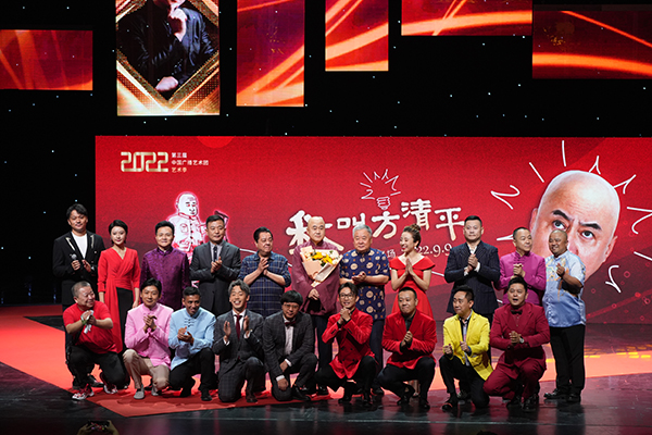 演出圓滿結束,觀眾們意猶未盡,精彩紛呈的相聲新作品給廣大觀眾帶去了歡樂和笑聲,陪伴大家度過了一個難忘的中秋節。《一路歡歌,與您同行》相聲新作品晚會,用緊貼時代的熱點題材,幽默詼諧的相聲語言,技藝精湛的高水平演出,在迎接黨的二十大召開之際獻上一份歡聲笑語的相聲賀禮,體現了國家級藝術院團的責任與擔當。