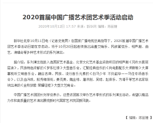 8月至10月,中國廣播民族樂團和中國廣播說唱團將分別在民族文化宮、國家大劇院演出原創民族交響歌劇《莫高窟》音樂會、《桃李芬芳》專場音樂會、《新相聲作品晚會》以及《群星薈萃》相聲專場晚會。