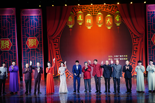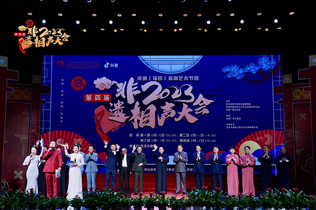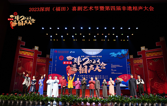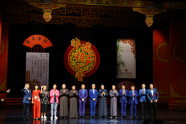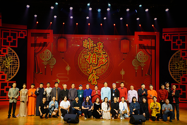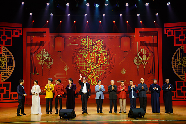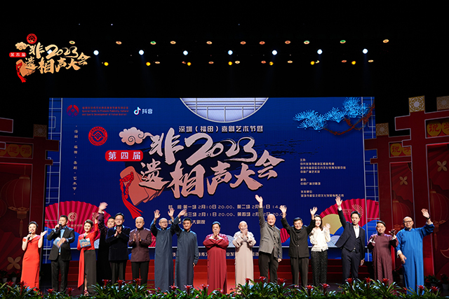 非遺相聲大會”是由中國廣播藝術團主辦,中國廣播說唱團承辦的相聲專場系列演出。中國廣播藝術團作為國家非物質文化遺產保護性項目相聲傳承單位,從2019—2023年連續成功舉辦了四屆“非遺相聲大會”,每屆都有來自全國各地的數十到上百位著名相聲演員、青年新秀在非遺相聲大會的舞臺上留下了身影,眾多國家級藝術院團和優秀相聲團體傾力參演。展演節目內容豐富、形式多樣,既有廣為流傳、膾炙人口的經典傳統劇目,又有深植時代、反映新時代主題的原創相聲新作。