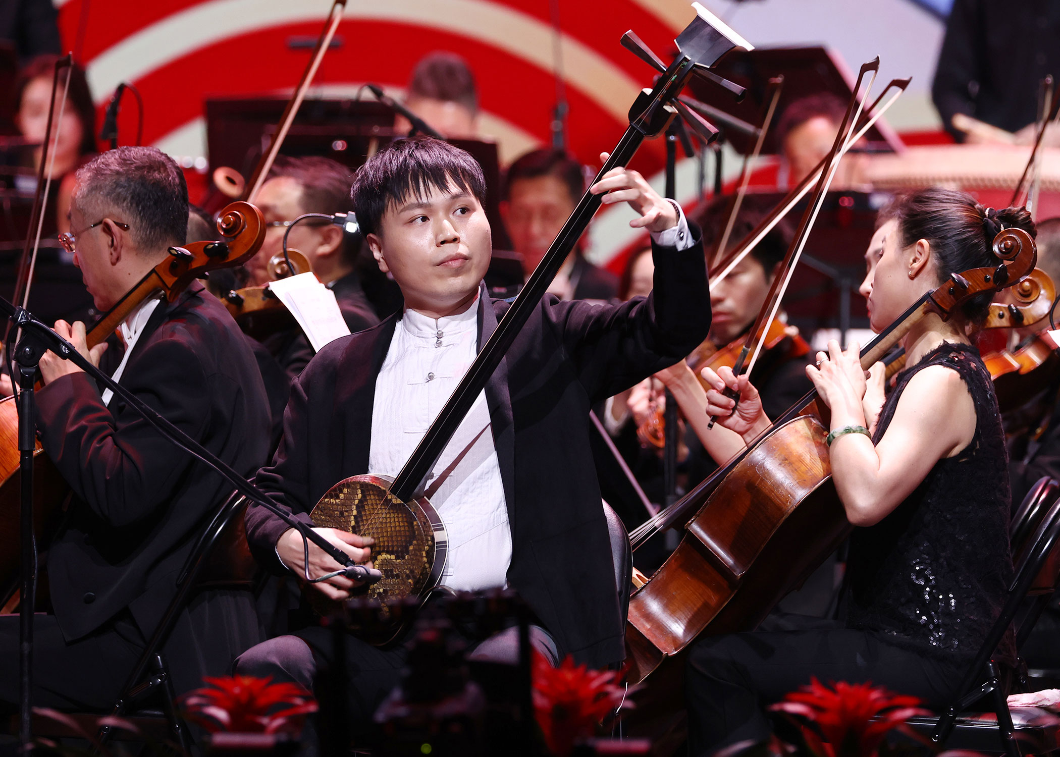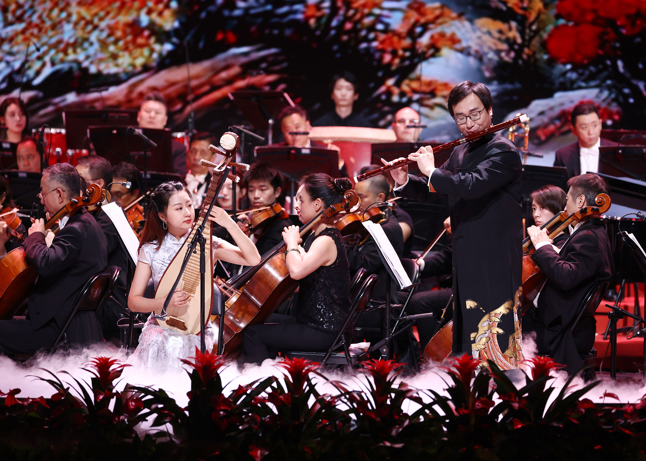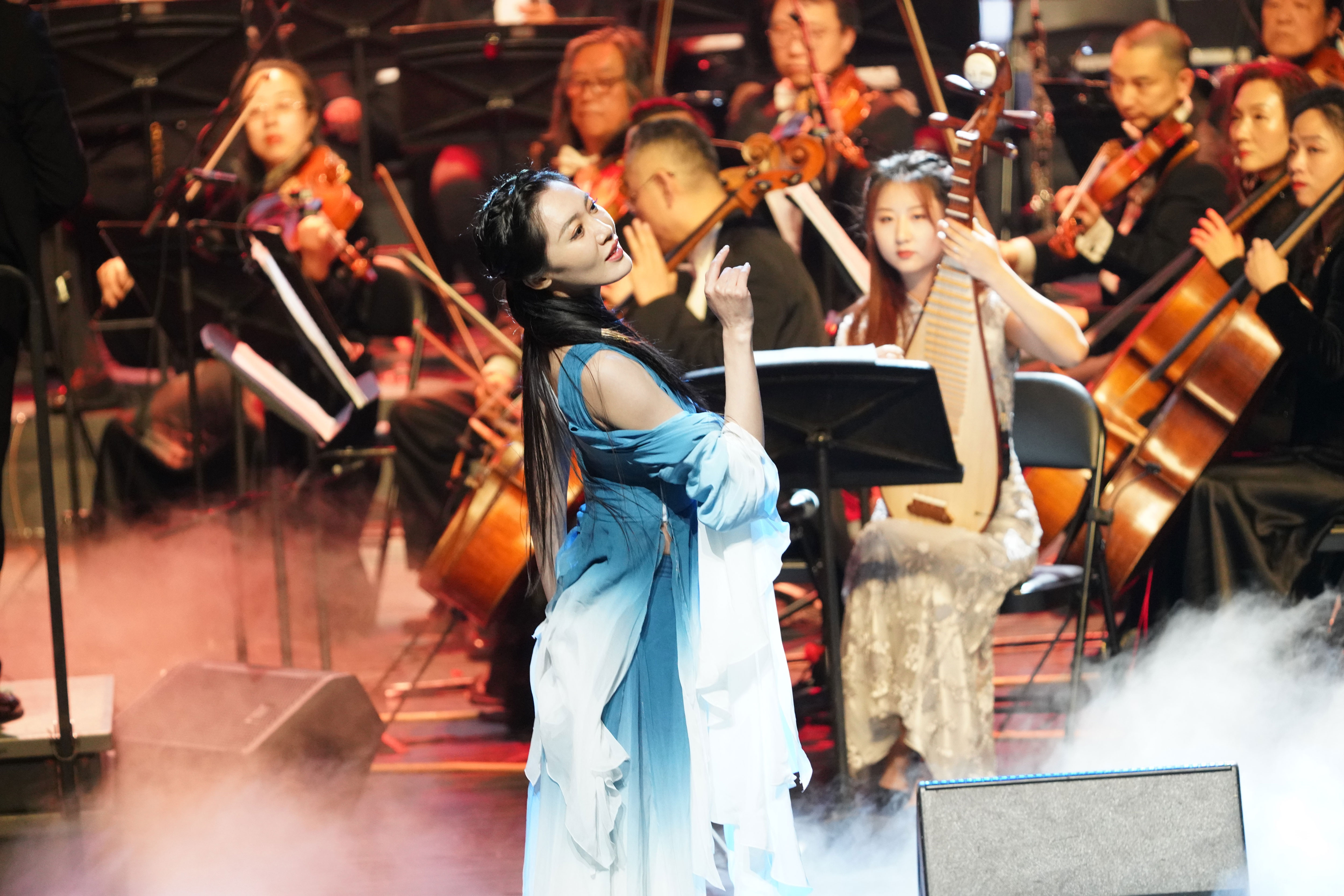 精心設計制作的節氣視頻與二十四節氣樂章緊密呼應,伴隨著現場燈光舞美營造出的意境和氛圍,交響樂、民樂、流行樂同臺演奏,詩歌吟誦、歌唱、舞蹈多種藝術形式相融合,聯手演繹震撼心靈的視聽盛宴,引領觀眾沉浸式體驗美輪美奐的音畫樂章。