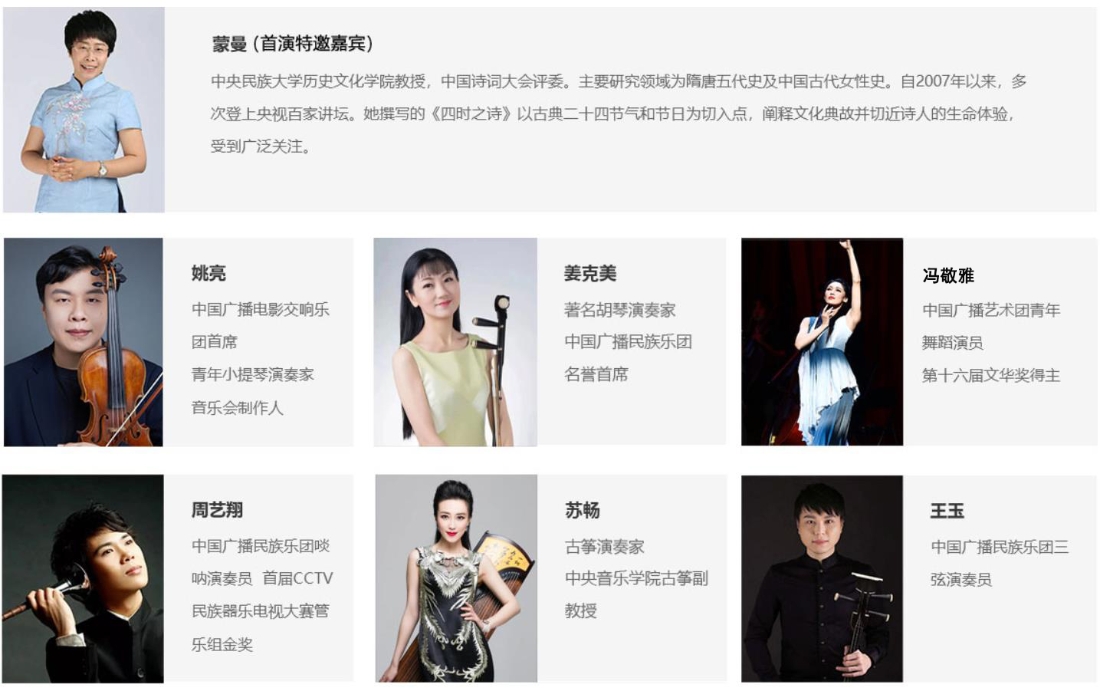 音樂會在2021年7月1日在北展劇場首演,現場特別邀請了中央民族大學歷史文化學院教授,中國詩詞大會點評嘉賓蒙曼教授的強力加盟。音樂會一度引發了熱烈反響,演出后現場觀眾滿意度調查占比高達97.64%。
