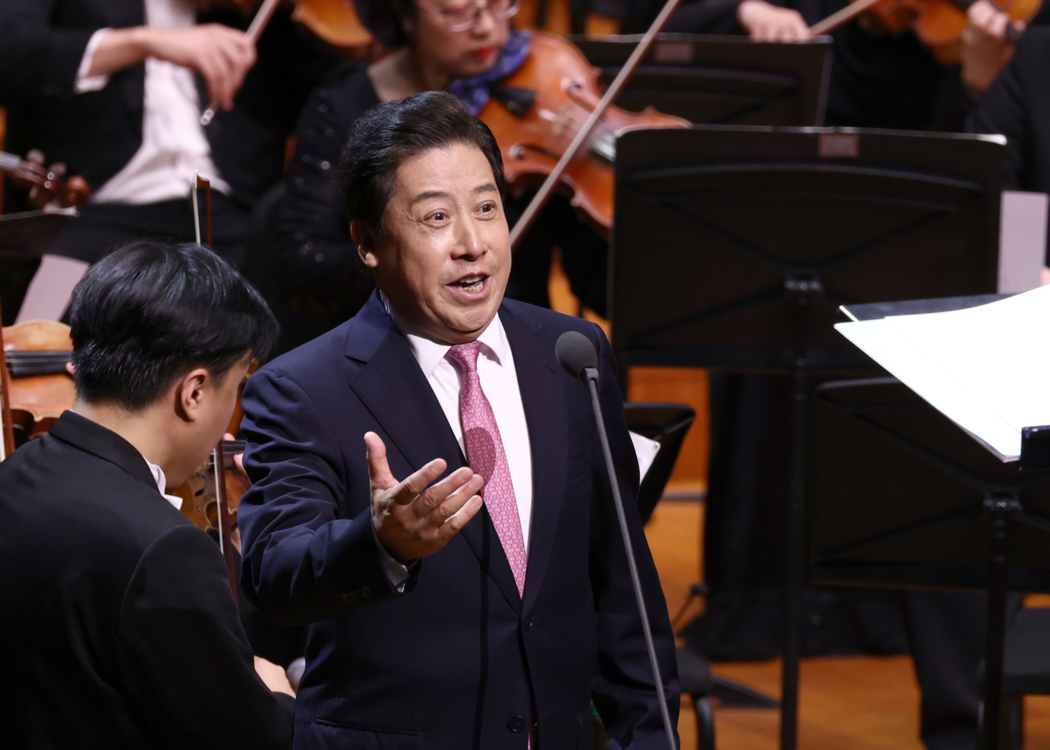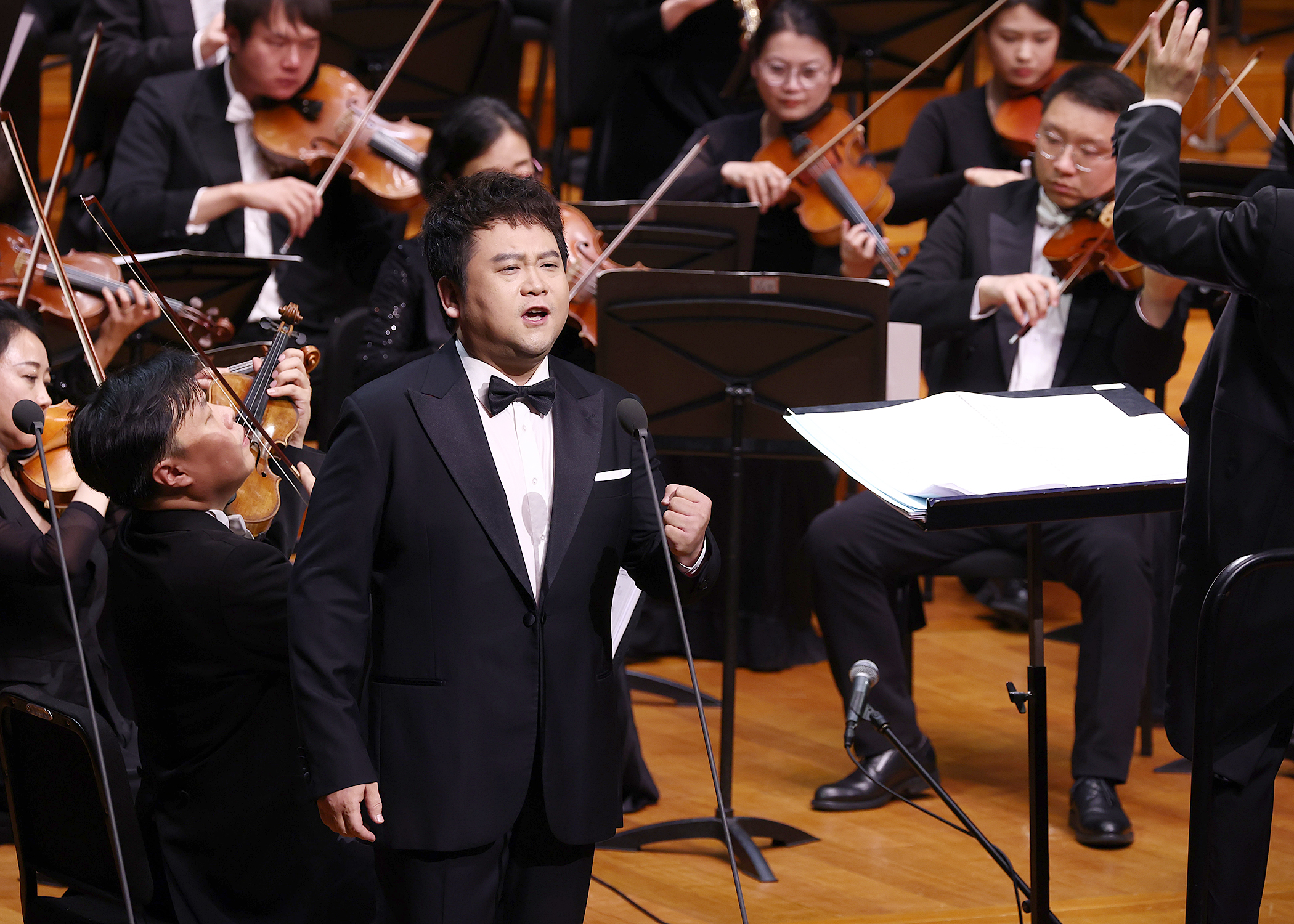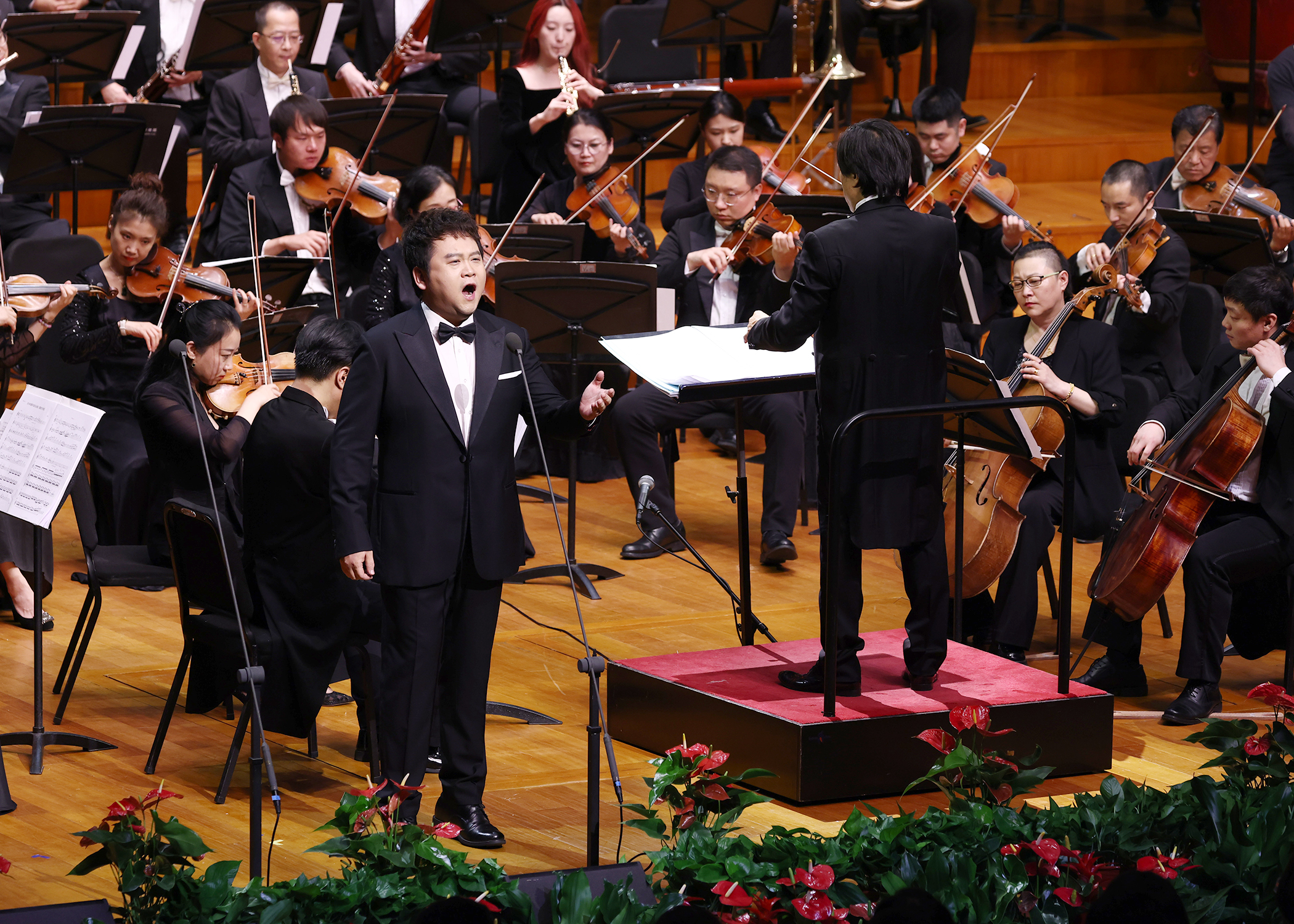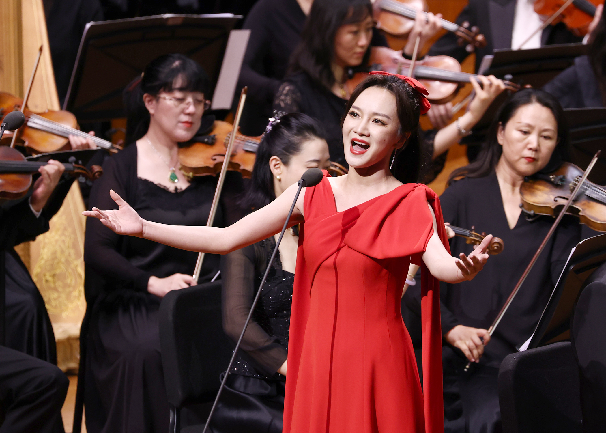 特邀京劇名家張馨月、傅希如,一位是梅派傳人,一位是余派新銳,他們聯(lián)袂演唱京劇戲歌《中華》,歌曲以京劇音樂為元素,將交響樂與京劇重唱、合唱相結(jié)合,情緒飽滿、韻味十足