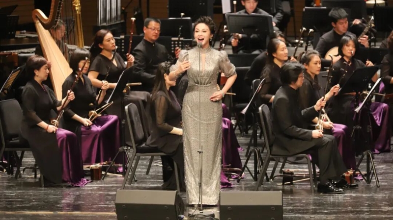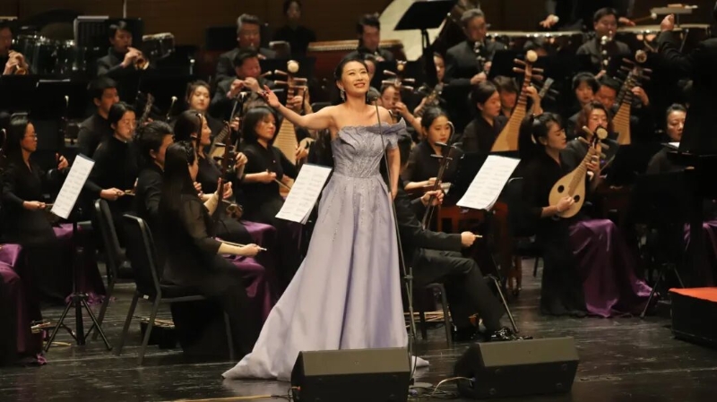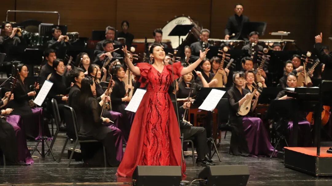 民族管弦樂《正月·元宵》則緊扣節日主題,旋律明朗樸實,在節奏變化中呈現出節慶場景的熱鬧與溫度。音樂會中段呈現經典紅色歌曲聯唱。《映山紅》《十送紅軍》《英雄贊歌》依次唱響。岳璐、王小瑩、劉洺君的演唱沉穩而真摯,在民族管弦樂伴奏下,更顯厚重與層次。熟悉的旋律引發觀眾共鳴,現場氣氛溫暖而專注。