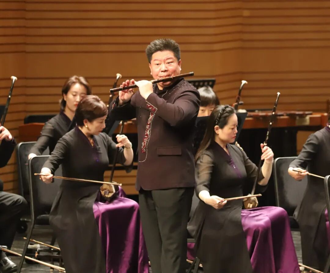 《節日序曲》襯托出元宵節的喜慶節慶氛圍。作品節奏鮮明,結構清晰,展現出民族管弦樂的整體音響張力。《月亮歌》《太陽歌》在色彩對比中展開,旋律溫潤而富有層次。不同聲部的交織,使音樂在靜與動之間自然過渡。笛子與樂隊《秦川情》成為下半場的亮點之一。笛子演奏家侯長青用音色清新明亮,旋律線條流暢的演奏,與樂隊配合默契,既有西北地域風格的質樸,也有細膩抒情的表達。