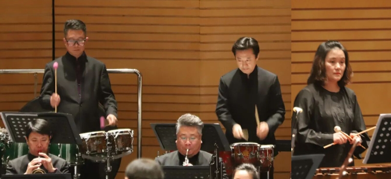 壓軸曲目《龍躍東方》以鮮明節奏與飽滿音響收束全場。打擊樂演奏家默契合作,吳曉光的排鼓、朱雷的通通鼓與吳小甦的馬林巴,三種打擊樂的加入增強了節奏層次,樂隊整體音響更加厚實有力,在穩健推進中為整場音樂會畫上了圓滿的句號。